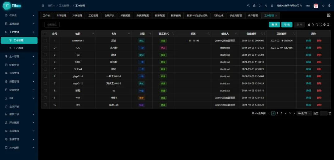 tmom是一款基于 .NET 开源、通用的生产制造系统,支持多厂区/多项目级的MOM/MES系统,计划排程、工艺路线设计、在线低代码报表、大屏看板、移动端、AOT客户端…… 目标是尽可能打造一款通用的生产制造系统。前端基于最新的vue3、ts、ant design vue, 后端使用.net8、Sqlsugar,支持多种数据库切换、数据隔离与聚合。