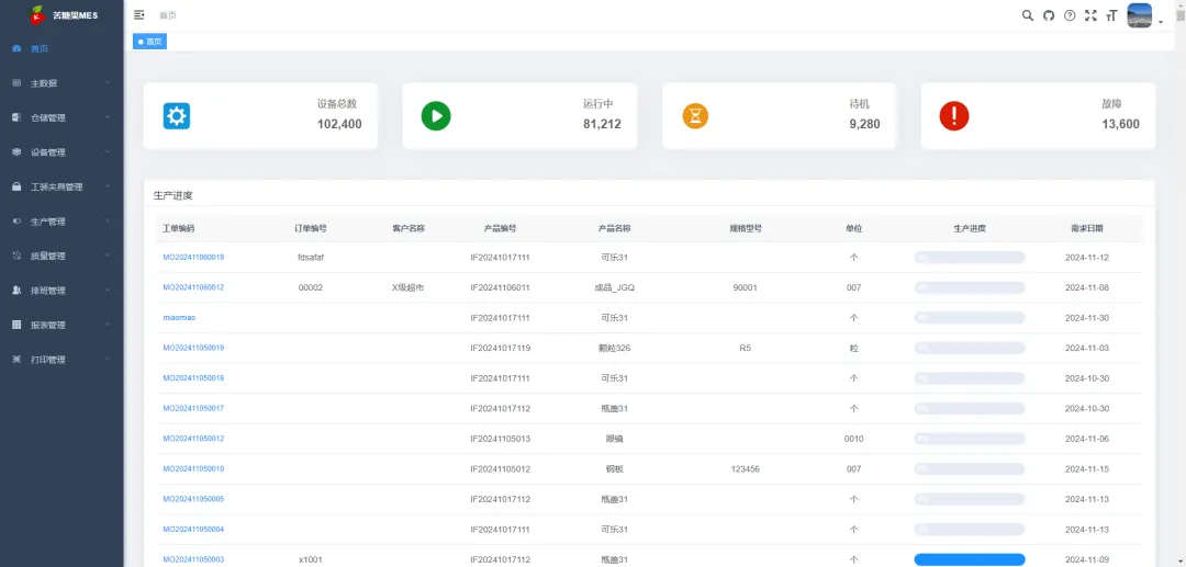 苦糖果MES是一款专业、通用、开源、免费的生产执行管理系统(MES),该项目致力于通过开源的方式,为离散制造业的中小企业提供一个低成本、高效的生产执行管理系统解决方案,同时提供全面的文档和支持,帮助用户顺利实施和应用。