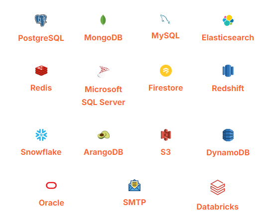支持 REST API、GraphQL、数据库(如 MySQL、PostgreSQL)、消息队列等多种数据源。 -
