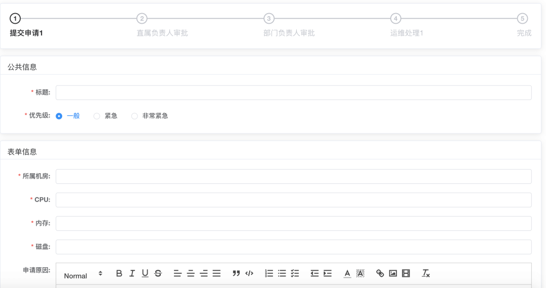• 流程配置:通过灵活的配置流程、模版等数据,快速生成工单流程。