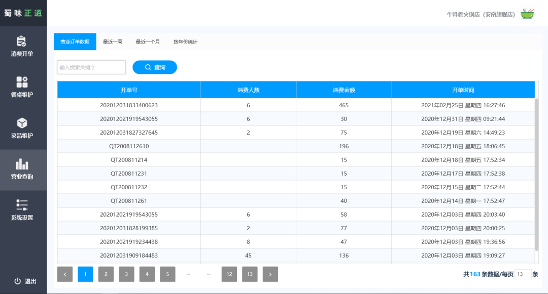 经营数据统计:提供营业查询功能,统计并分析餐厅经营数据,为管理者提供决策支持。