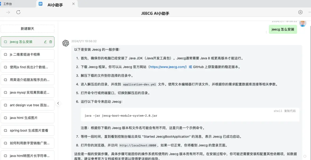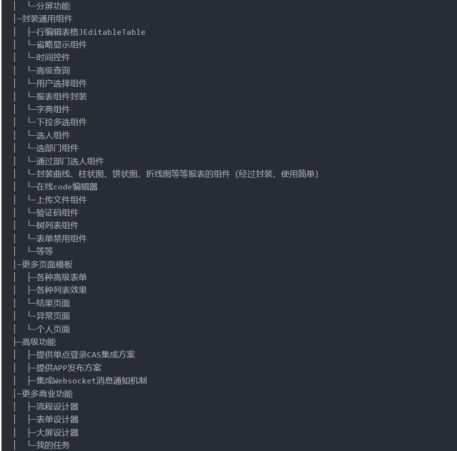 JeecgBoot 是一款基于BPM和代码生成器的 AI低代码平台,专为Java企业级Web应用而生。它采用了前后端分离架构,集成了SpringBoot2.x/3.x、SpringCloud、Ant Design Vue3、Mybatis-plus、Shiro、JWT等技术栈,支持微服务、多租户,并集成了AI大模型如DeepSeek和ChatGPT等,提供了强大的代码生成器和一系列AI能力低代码模块。