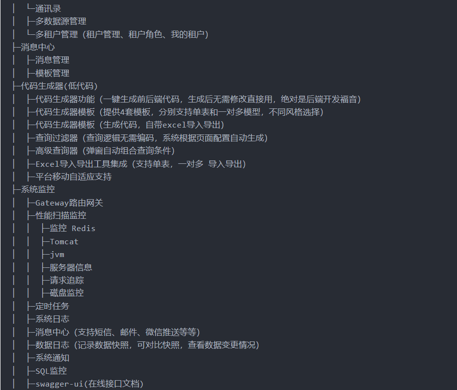 • 微服务支持:集成SpringCloud Alibaba,支持单体和微服务架构.