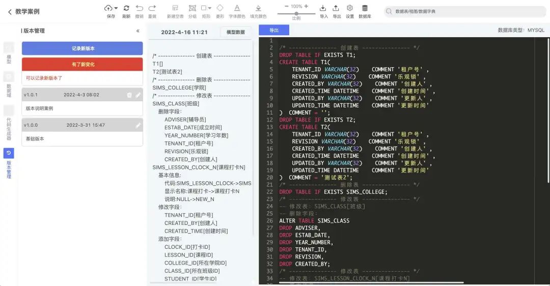 版本管理:实现数据表的版本管理,可生成增量DDL脚本,便于数据库的版本控制和迁移。