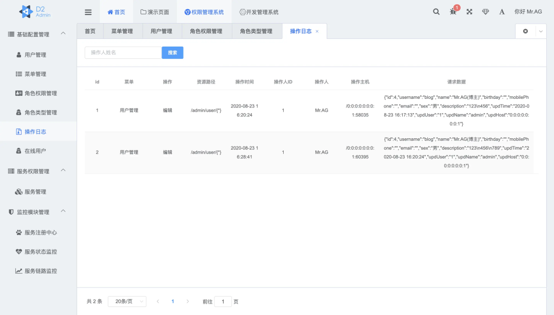 • RBAC权限管理:提供细粒度的角色权限控制,支持用户、角色、权限的灵活配置,确保系统安全性。