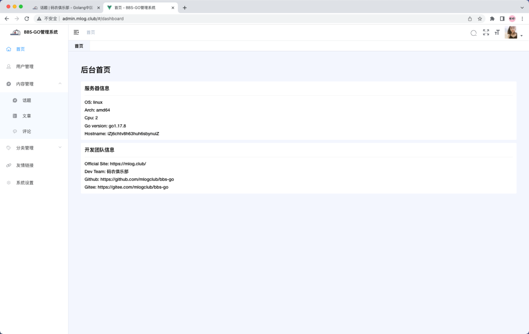 基于Golang搭建,提供接口数据支撑。Go语言以其高性能和并发特性,确保了bbs-go在高负载下仍能保持良好的性能表现。