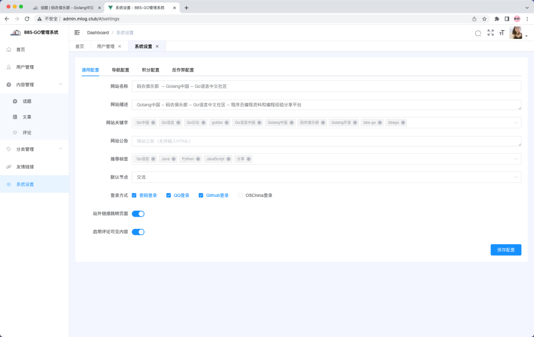 高性能:基于Go语言的并发特性,bbs-go能够在高负载下保持良好的性能表现。 -