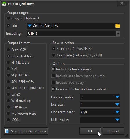 数据库间直接导出