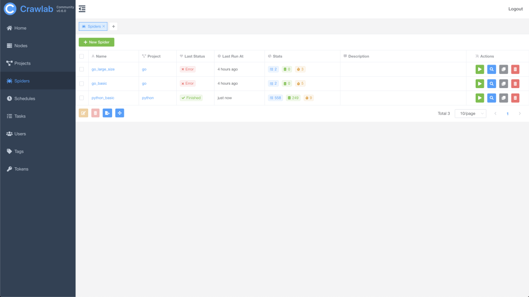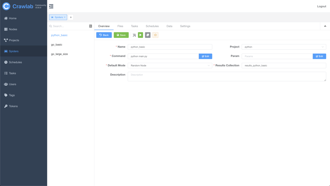 多语言和多框架支持:Crawlab支持多种编程语言和爬虫框架,使得用户能够轻松地将自己编写的爬虫集成到平台中。