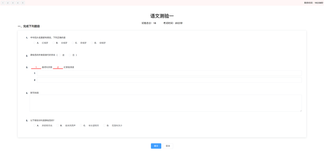 丰富的题型支持:支持单选题、多选题、判断题、填空题、简答题等多种题型,题干支持文本、图片、表格、数学公式等。 -