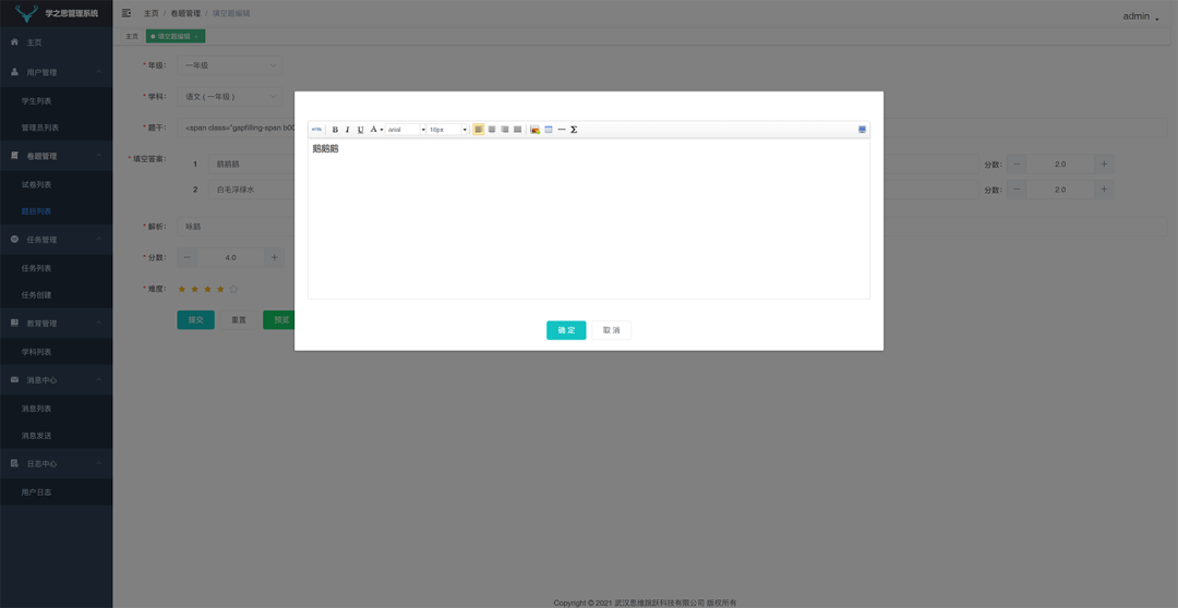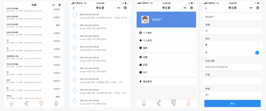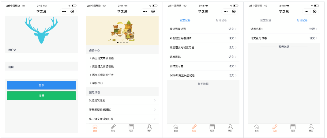 试卷管理:支持试卷的查询、修改、删除和创编,包括时段试卷、固定试卷、任务试卷等多种类型。