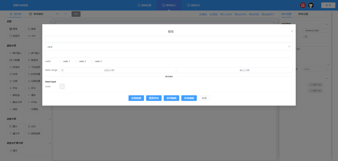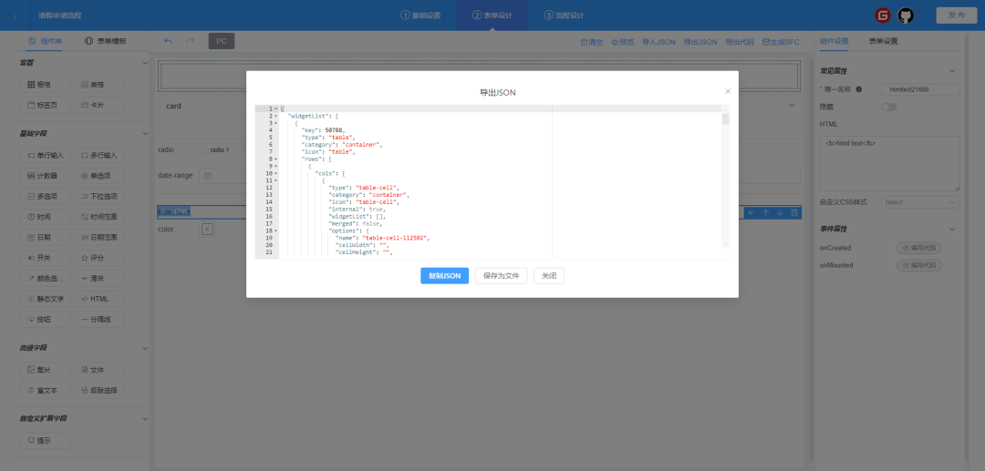 流程发布: 当前配置流程提交到Api接口。