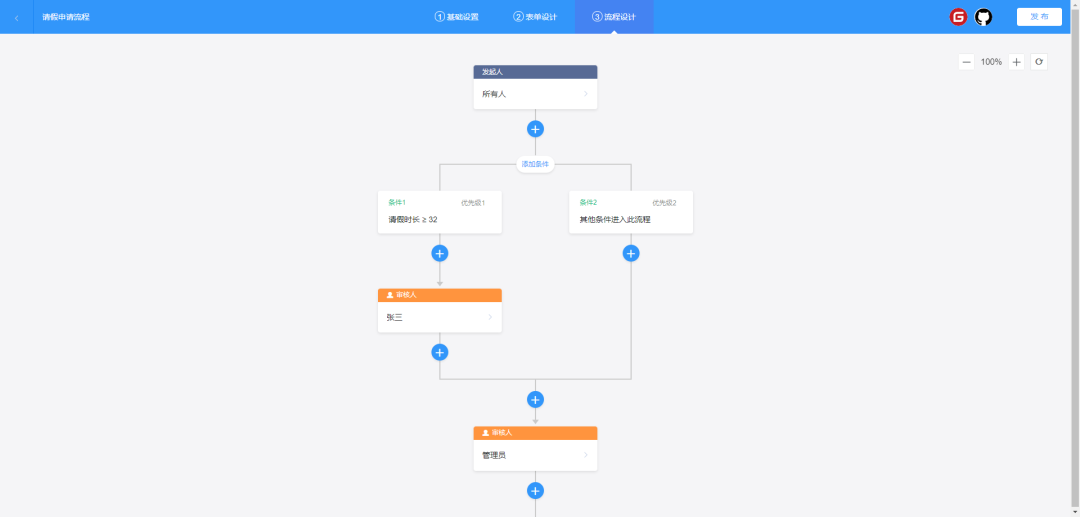 可视化流程配置:提供直观的用户界面,使用户能够通过拖放和配置来创建复杂的审批流程。 -