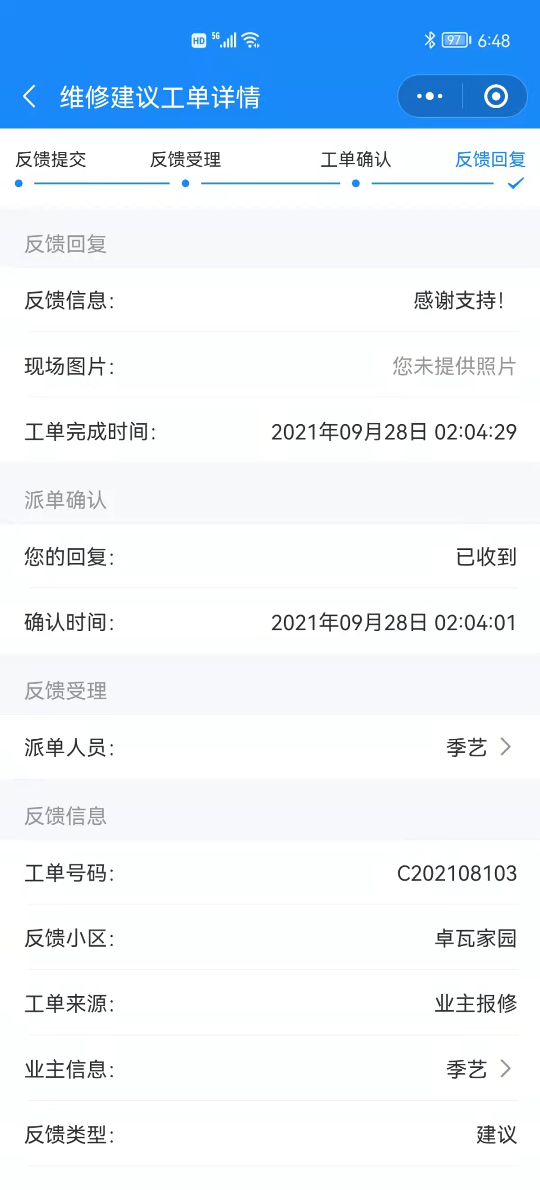 业主小程序:为业主提供了便捷的服务入口,包括报修、缴费、投诉等功能,提高了业主的满意度。 -
