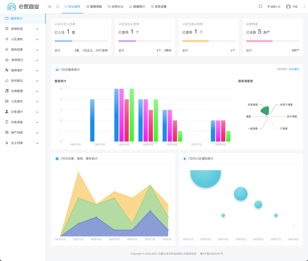 e家宜业是一款功能齐全、高颜值的智慧物业管理系统,旨在通过先进的技术手段提升物业管理效率和服务质量。