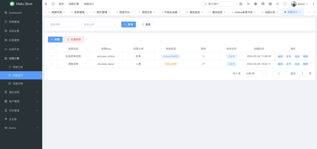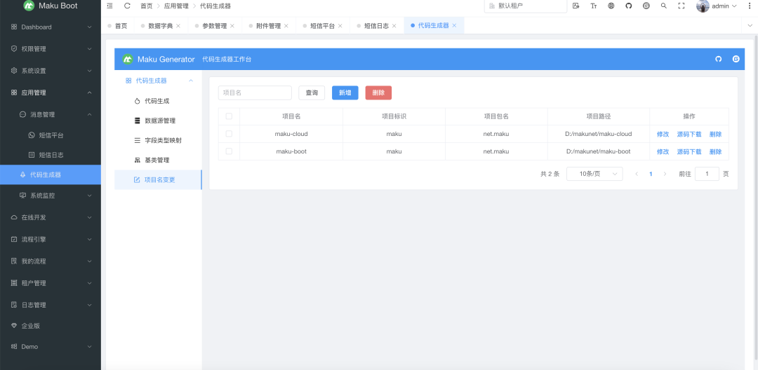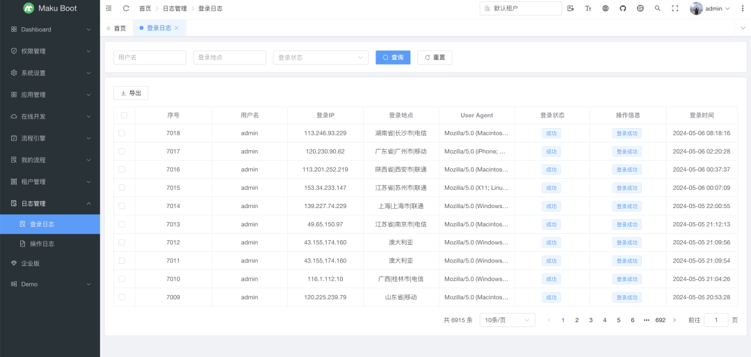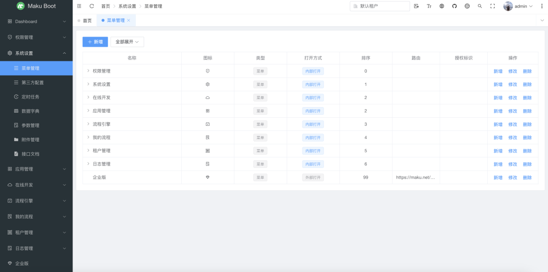 maku-boot 是采用SpringBoot3.4、SpringSecurity6.4、Mybatis-Plus、Flowable7.0、Vue3、Element-plus等技术开发的低代码开发平台,旨在为开发者提供一个简洁、高效、可扩展的低代码开发平台。