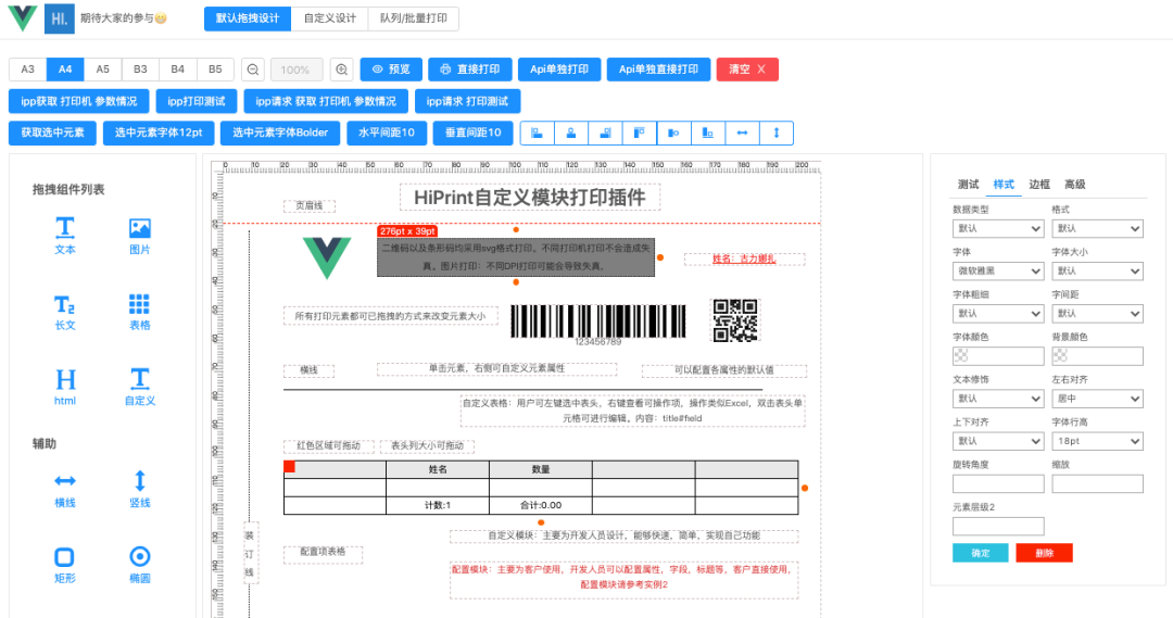 vue-plugin-hiprint是一个基于Vue2和Vue3的开源打印插件,它提供了打印、打印设计、可视化设计器、报表设计、元素编辑以及可视化打印编辑等功能。