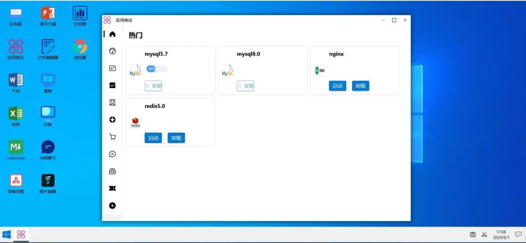 应用商店:提供丰富的外部接口,支持应用的导入、添加和下载。