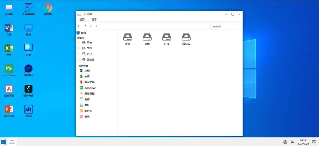 系统桌面:精仿Windows风格的桌面设计,提供便捷的桌面文件管理功能。 -