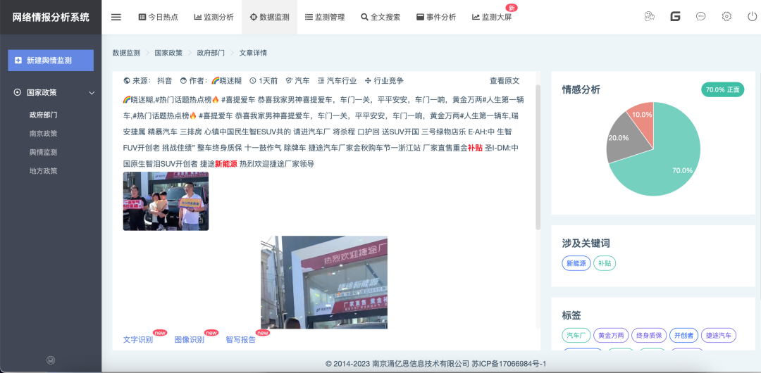 思通舆情系统适用于任何需要监测和分析网络舆论数据的组织和个人。通过系统提供的功能和服务,用户可以更好地了解公众意见和态度,为决策制定和业务发展提供数据支持。