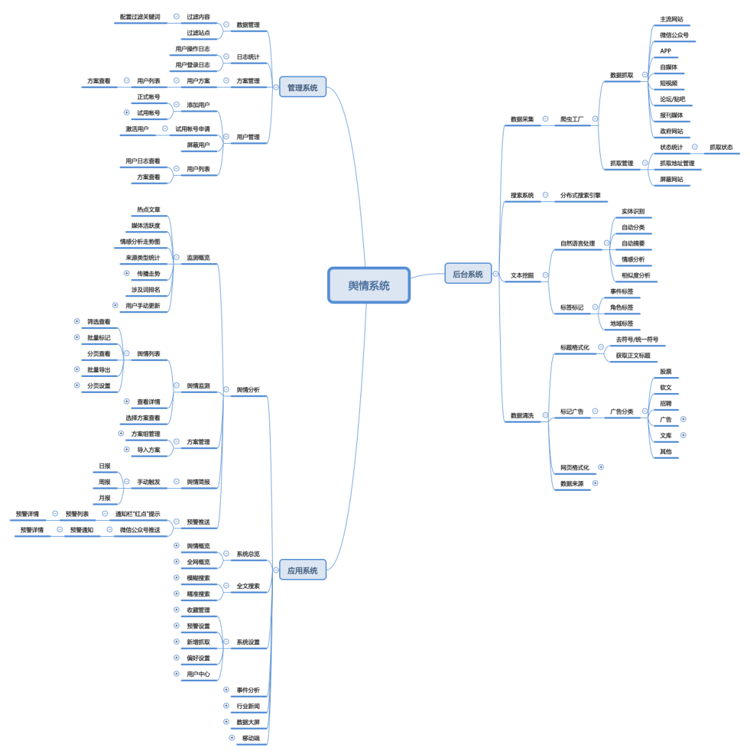 舆情分析:提供全网事件分析、传播分析、竞品分析、评论分析等多种大数据分析功能。 -