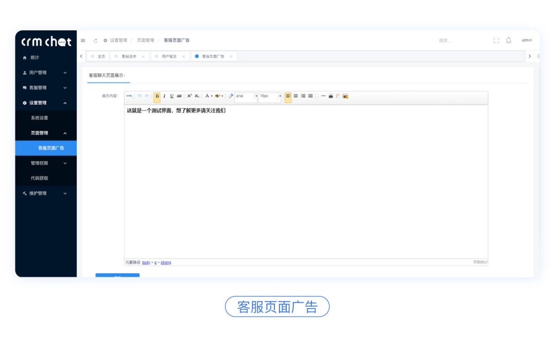 CRMChat是一款高性能的客服系统,系统采用Swoole4+Tp6+Redis+Vue+Mysql开发,支持微信网页、H5端、PC端客服接入。