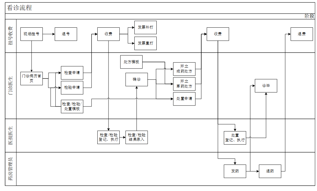 临床诊疗:包括门诊医生工作站、医技医生工作站等,处理临床诊疗活动。 -