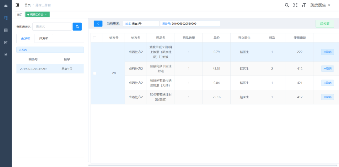 药房医生工作站:负责药品的发放和管理。 -