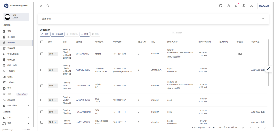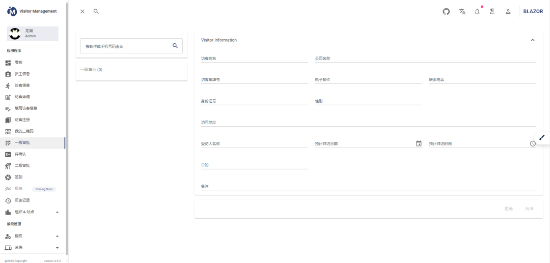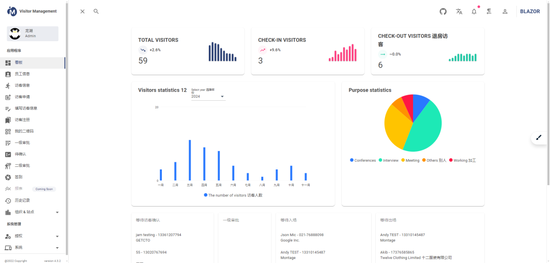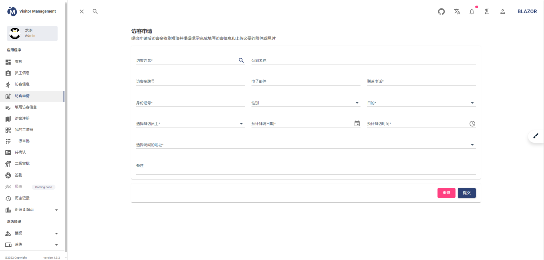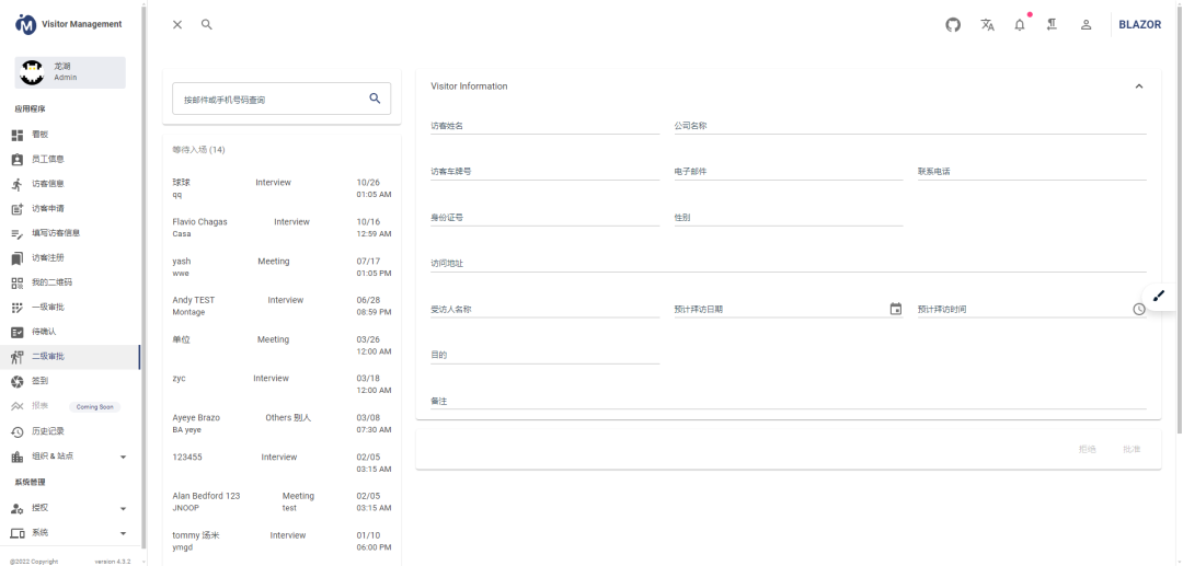 visitormanagement是一款基于 .NET (Apache License协议)、功能全面的企业智能访客管理系统。