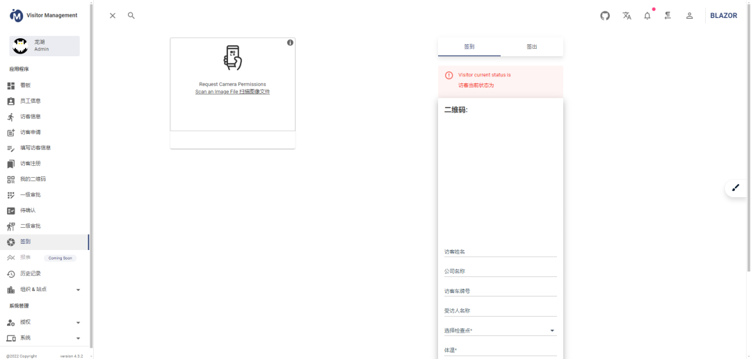 在线演示地址:https://visitor.blazorserver.com/visitor/checkinpoints