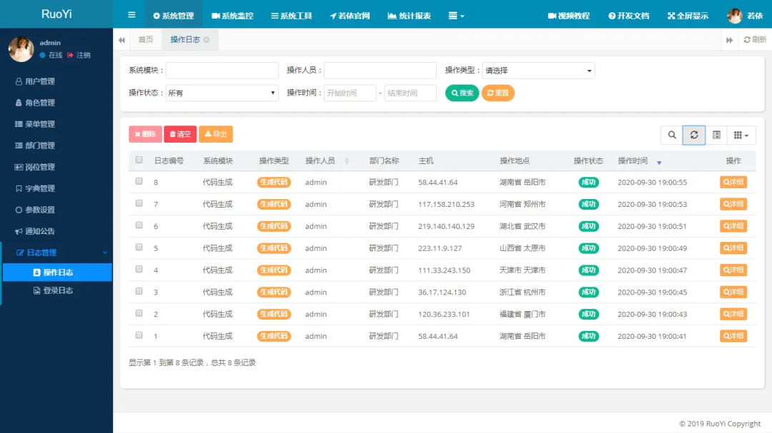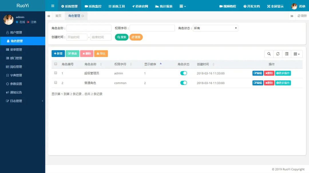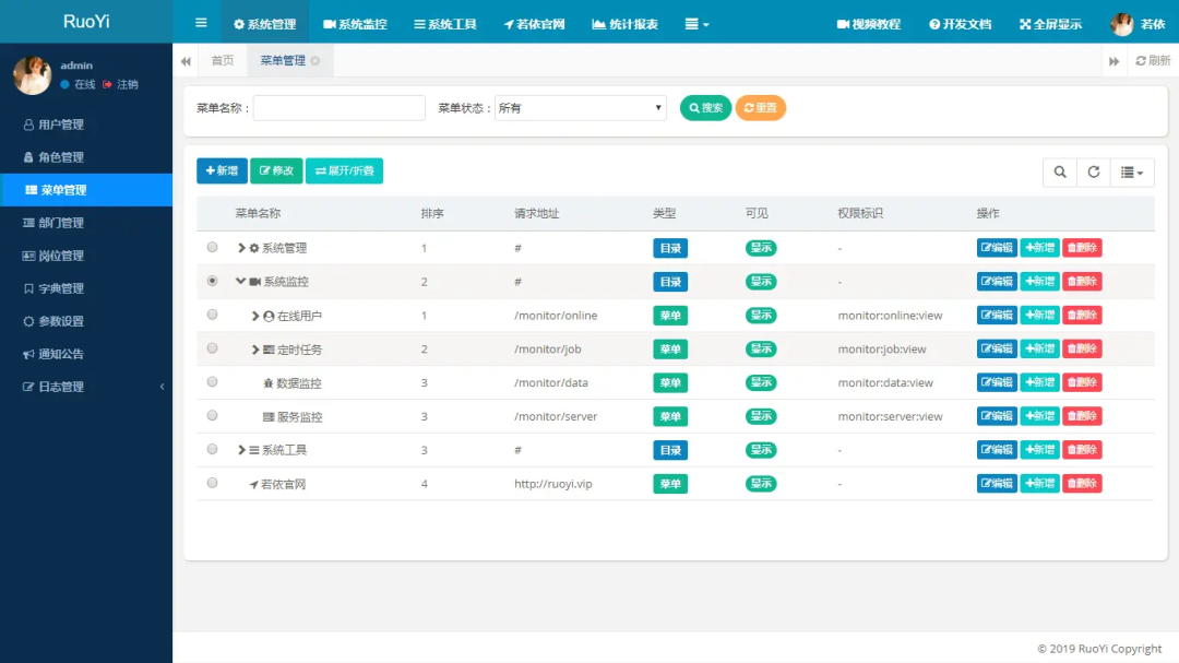 RuoYi适用于所有Web应用程序,如网站管理后台、CMS、CRM、OA等。