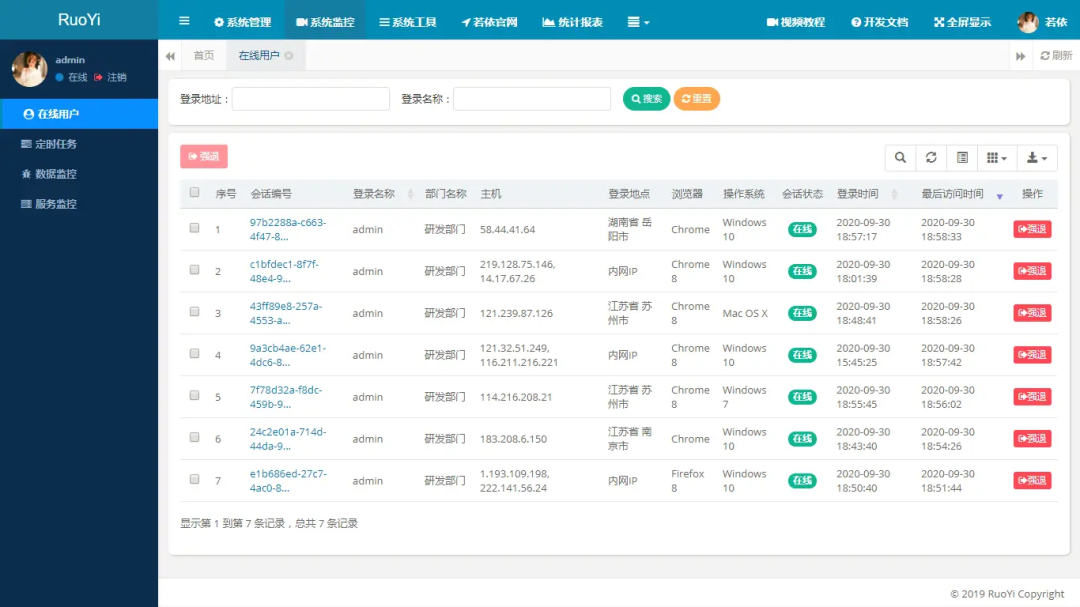 在线用户:监控当前系统中活跃用户状态。 -