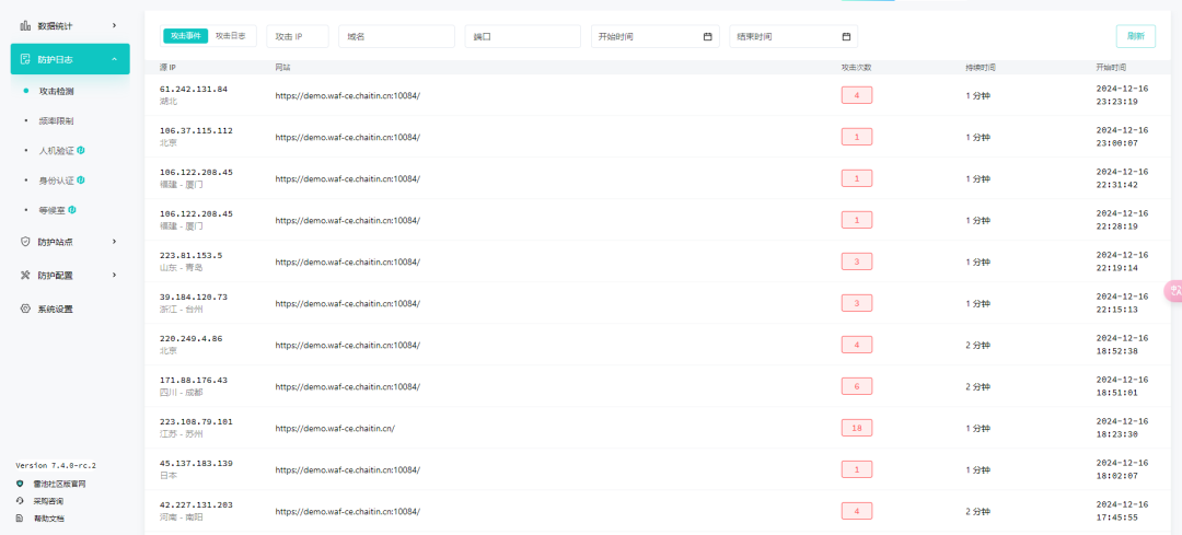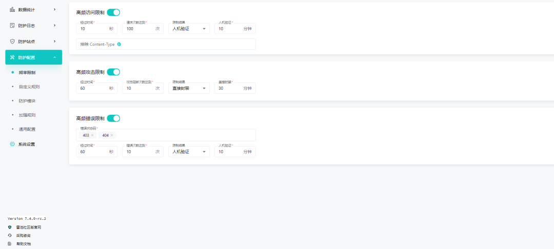 速率限制:通过基于IP的速率限制,防御DoS攻击、暴力破解尝试、流量激增和其他类型的滥用。