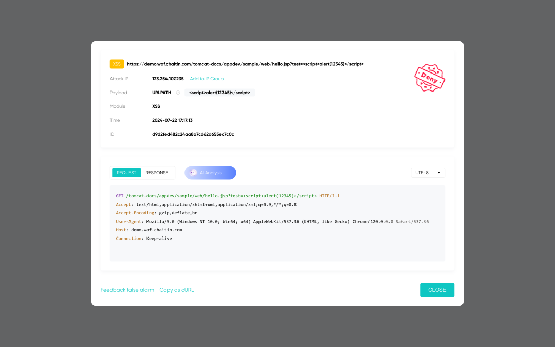 防御Web攻击:提供对SQL注入、XSS、代码注入、操作系统命令注入、CRLF注入、XXE、SSRF、路径遍历等多种Web攻击的防御。 -