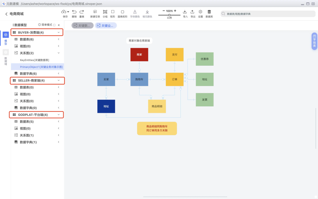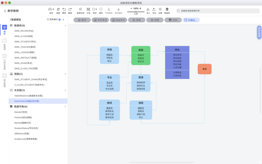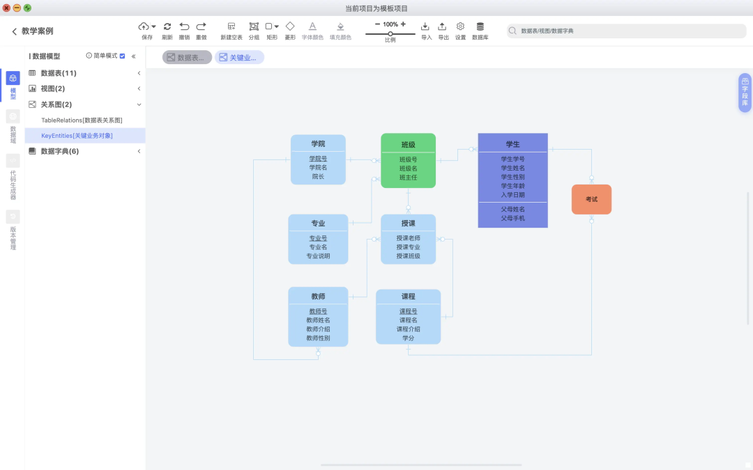 ER关系图:支持绘制数据表的ER关系图,也支持概念模型等高阶抽象设计。 -