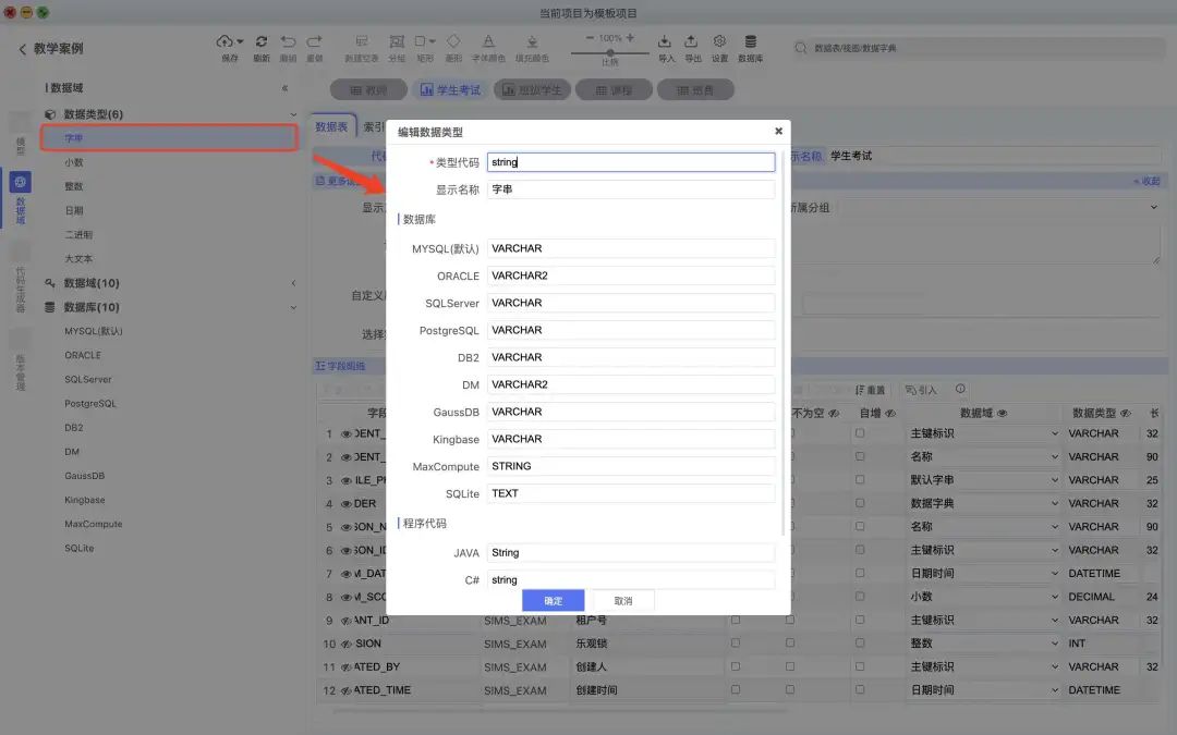 数据类型:系统实现基础数据类型,并支持用户自行添加和定义数据类型及数据域。 -