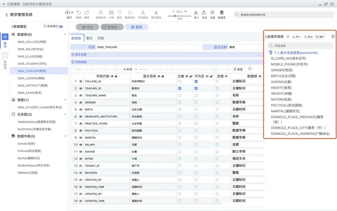 数据表管理:提供数据表、字段、注释、索引等基本功能,方便用户进行数据库设计。