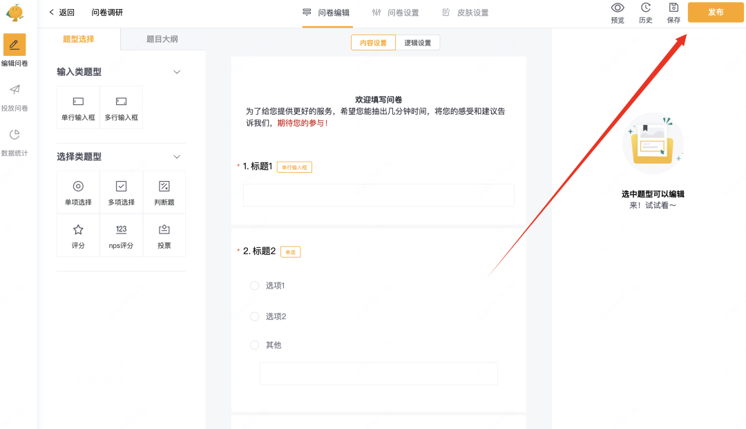 多类型数据采集,轻松创建调研表单。 -