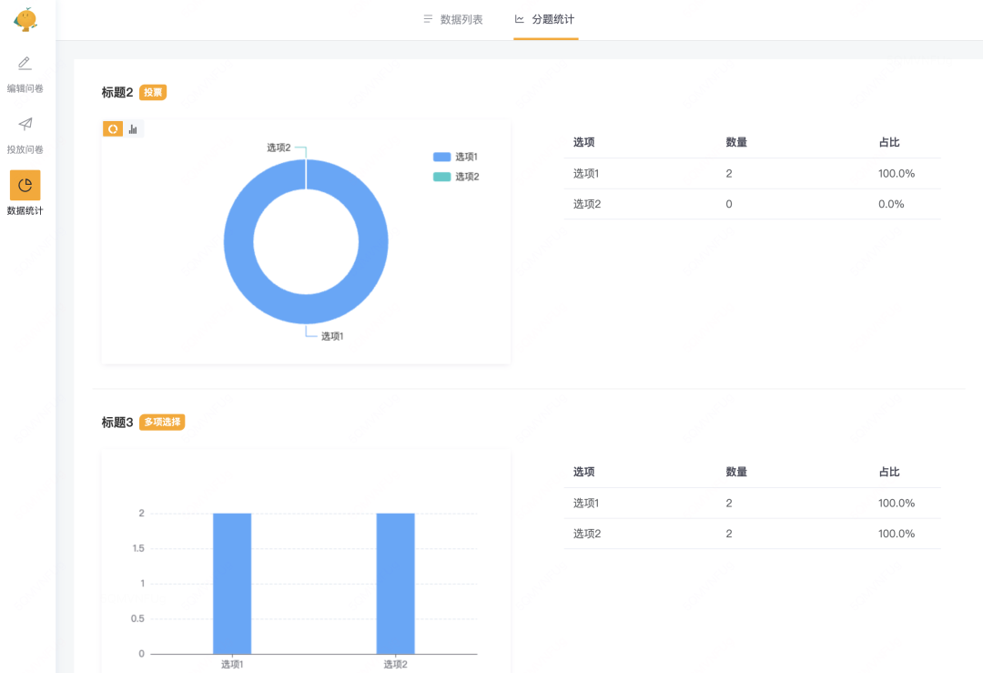 数据在线分析和导出,洞察调研结果。