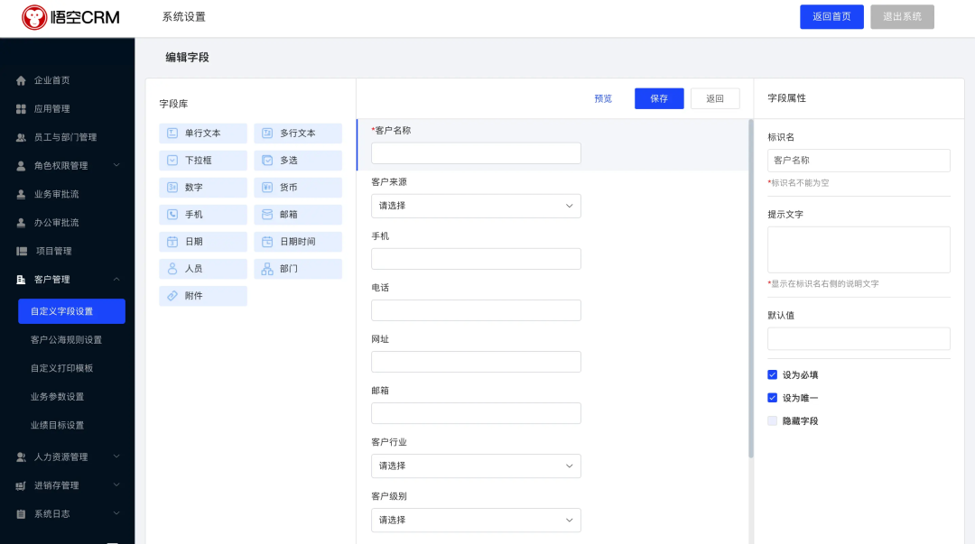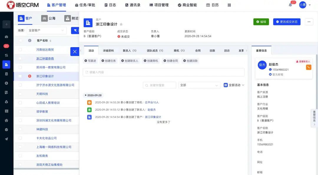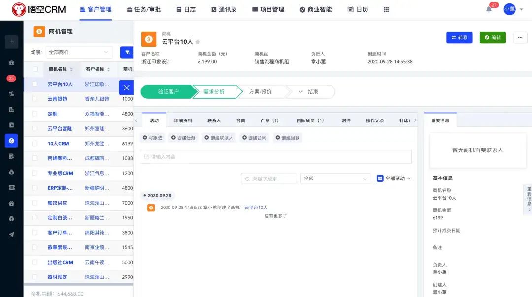 悟空CRM是一款为现代企业量身打造的功能强大CRM管理系统,悟空CRM基于Spring Cloud Alibaba微服务架构 + Vue ElementUI的前后端分离CRM系统。