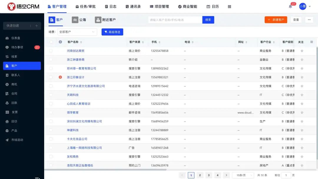 应用场景广泛,涵盖了设计制造业、服务业、金融业、政府机构等多种行业。以下是悟空CRM在不同行业中的具体应用场景: