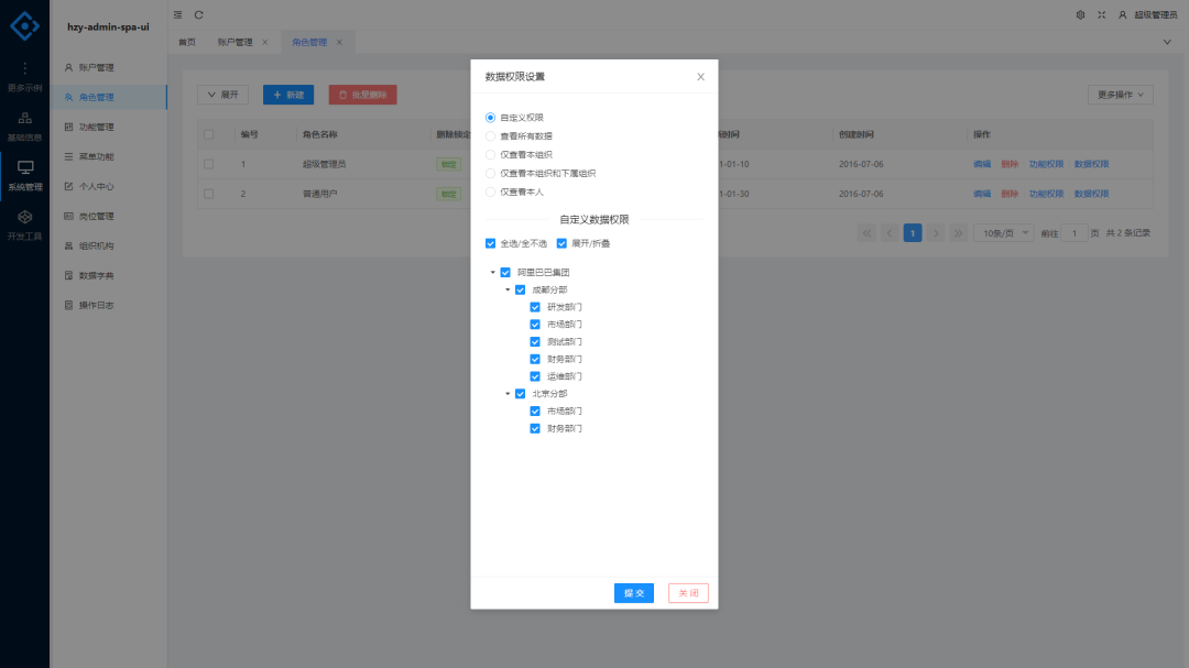 数据权限和按钮权限:实现细粒度的权限控制,确保数据安全。 -