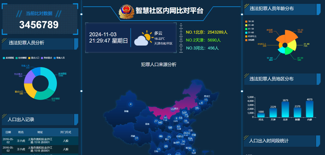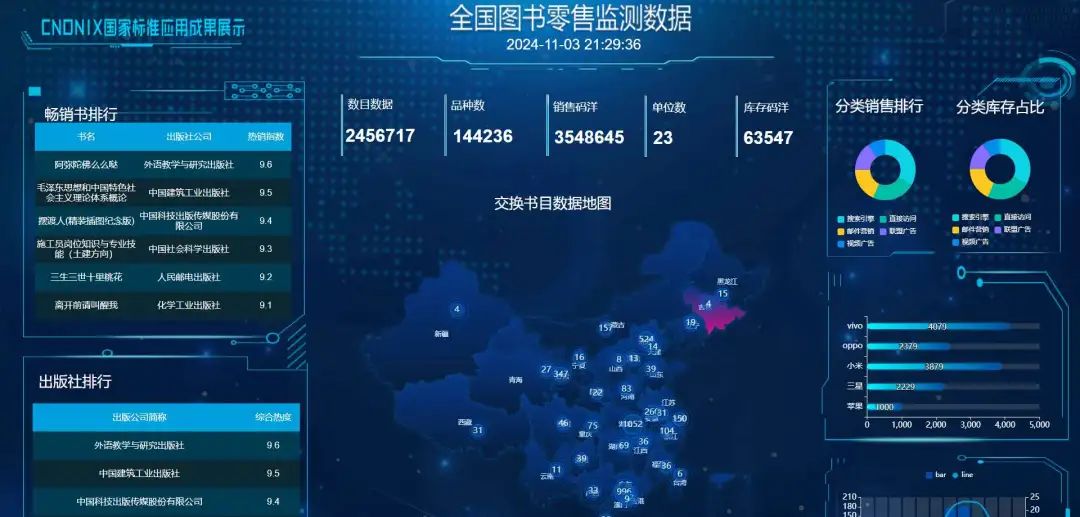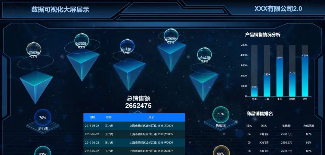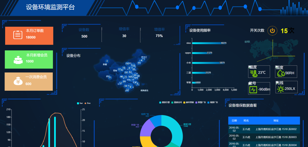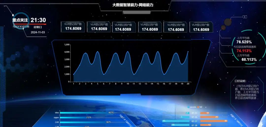 酷炫大屏展示:提供直观、酷炫、具有科技感的图表展示效果。