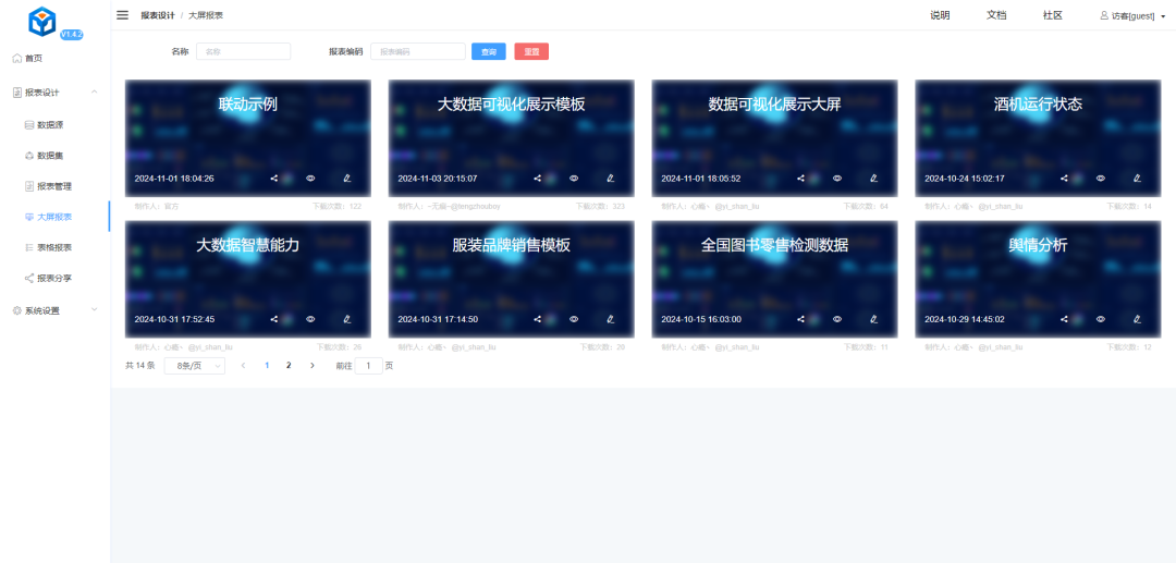 多数据源支持:内置mysql、elasticsearch、kudu等驱动,支持30+种大屏组件/图表,满足多样化需求。 -