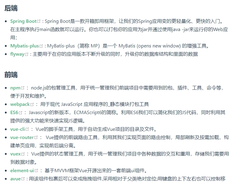 后端技术:基于Spring Boot 2.3.5.RELEASE和Mybatis-plus 3.3.2,采用flyway进行数据库版本管理。
