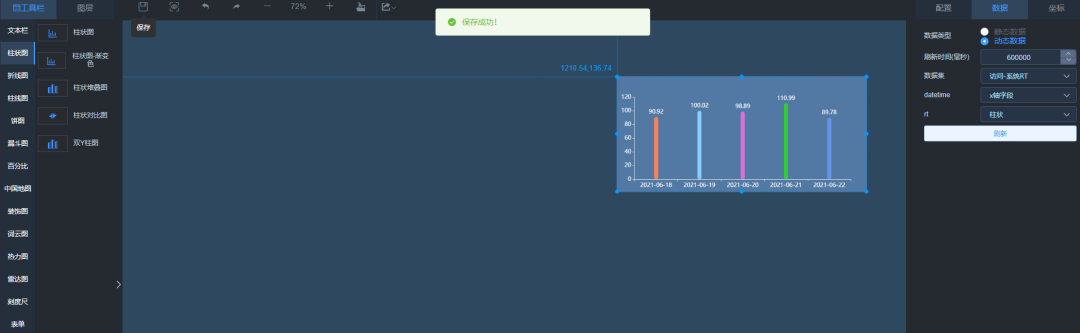 拖拽编辑:无需开发技能,只需拖拽组件即可完成大屏设计。 -
