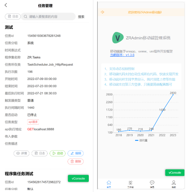 日志管理:NLog、登录日志、操作日志、定时任务日志。 -