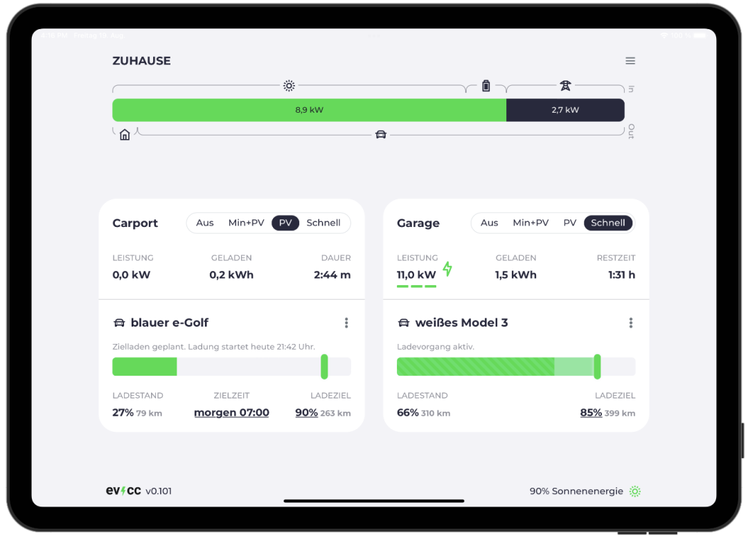 evcc是一个(MIT License)、功能强大、可扩展的电动汽车充电控制器和家庭能源管理系统,支持广泛的设备和品牌,提供简单的用户界面和强大的功能。