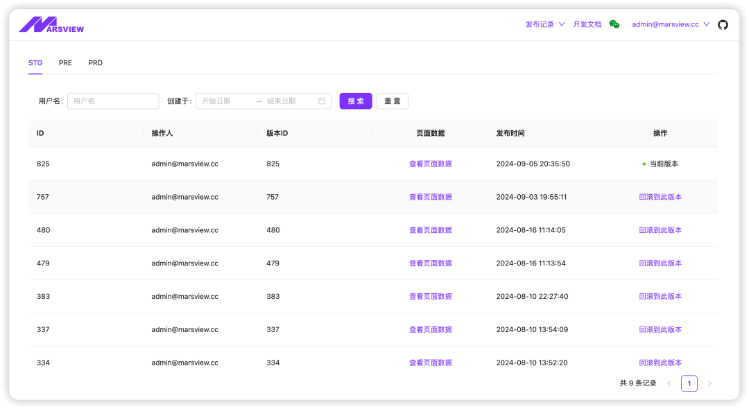 环境支持:平台支持STG、PRE和PRD三个环境,页面只能在发布到对应环境后才能在用户端访问。 -