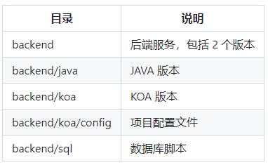 后端提供 JAVA 和 Koa 两个版本,数据库为 Mysql。 -